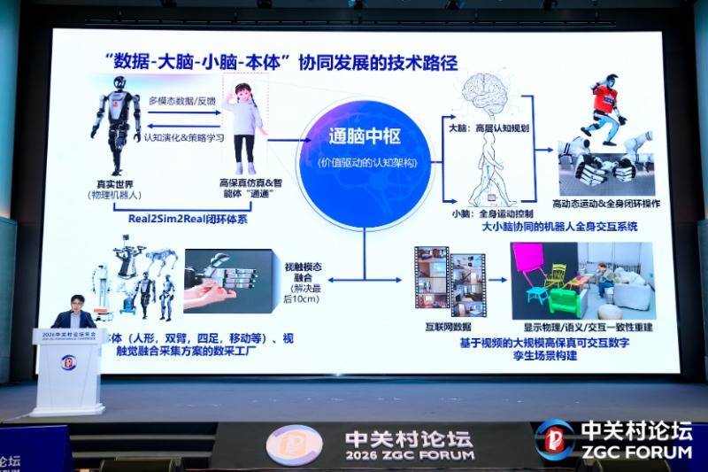 入选2026中关村论坛要紧后果的“通脑”,是通研院推出的具身智能、机器东谈主中枢引擎,旨在买通通用智能体与物理机器东谈主的双向通路,通过构建“数据-大脑-小脑-本色”协同发展的技巧旅途,推进具身机器东谈主从“遥控演示”迈向具备自主有野心、捏续学习和跨场景泛化智力的“通用阶段”。